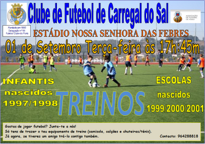 Se nasceste em 1997 ;1998; 1999; 2000 e 2001, gostas de jogal futebol comparece vestido a rigor no estádio nossa Senhora das Febres em Carregal do Sal no proximo dia 01 de Setembro 09 pelas 17:45 horas.