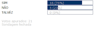 Pela sondagem feita aqui no blog sobre a visita pascal passar para Domingo de Pascoa, temos com 16 votos (76%) dos votantes são da mesma opinião em alterar a data para a realização da visita pascal em Pardieios contra apenas 5 (23%) dixeram que não.