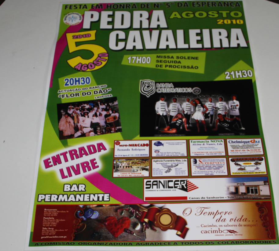 À semelhança de anos anteriores, a Associação da Pedra Cavaleira realiza este ano mais uma Festa de Verão da aldeia. No dia 5 de Agosto 2010 pelas 17:00 horas missa solene em Honra de de Nº. Sª. da Esperança. Pelas 20:30 horas actuação do Rancho " FLOR DO DÃO" , e pelas 21:30 horas actuação da BANDA CATEDRATICOS