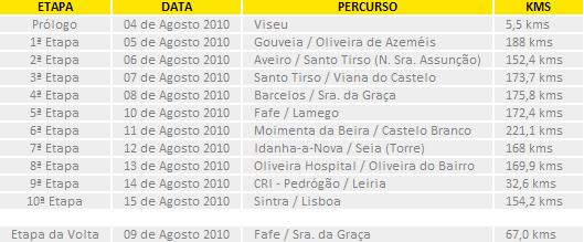 Com dez etapas Viseu a cidade de Viriato que nos últimos anos foi palco da comemoração dos vencedores este ano assistirá às primeiras pedaladas da prova.