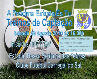 Sonhas em ser o próximo CRISTIANO RONALDO ? Então deslocate no próximo dia 28 de Agosto 2010 ás 16 :30 horas ao Estádio Nossa Senhora das Febres em Carregal do Sal.