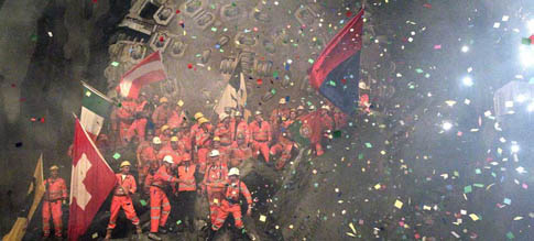 Com mais de uma década de trabalhos, perto de 13 milhões de metros cúbicos de rocha foram retirados para abrir o túnel de Gothard, nos Alpes Suíços, conciderada por muitos a "obra do século".