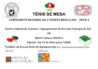 TENIS DE MESA 2º DIVISÃO NACIONAL Marco 21:20 Marco O Sport Lisboa e Benfica desloca-se a Carregal do Sal no proximo sabado dia 13 de Abril pelas 10:00 horas para disputar mais uma jornada de TÉNIS DE MESA com o Centro Cultural de Correlos/Agrupamentos de Escolas Carregal do Sal. Tweet Partilhar Partilhar Partilhar Partilhar Artigos Relacionados